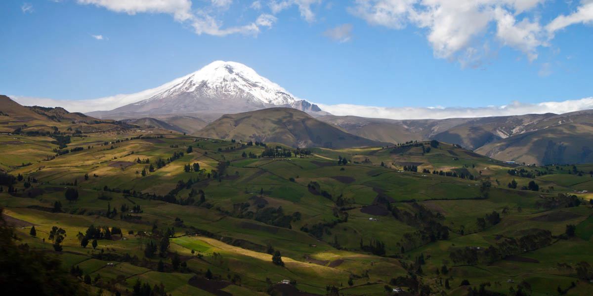 На западе страны, вдоль побережья Тихого океана, протянулись низменности и предгорья Анд, в центре страны расположены Анды, состоящие из двух параллельных хребтов — Западной Кордильеры и Восточной Кордильеры — с конусами потухших (Чимборасо, 6267 м) и действующих (Котопахи, 5896 м) вулканов. Восточная часть страны расположена в пределах Амазонской низменности.